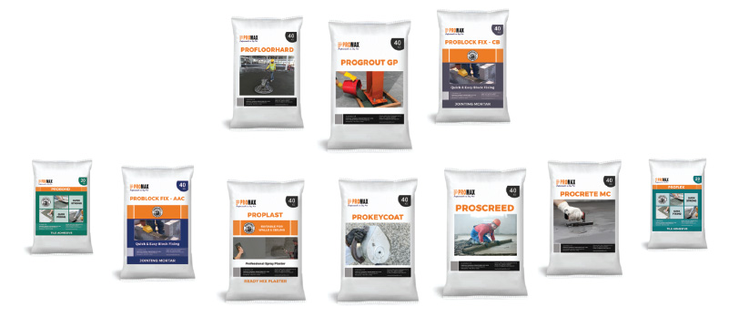 Promax offers a comprehensive range of Dry Mix products, including Block Mortars, Tile Adhesives, Ready Mix Plasters, Non-Shrink Grouts, Concrete Repair Products, and more. Our products are engineered to meet the highest quality standards and are designed to address the evolving needs of the construction industry.