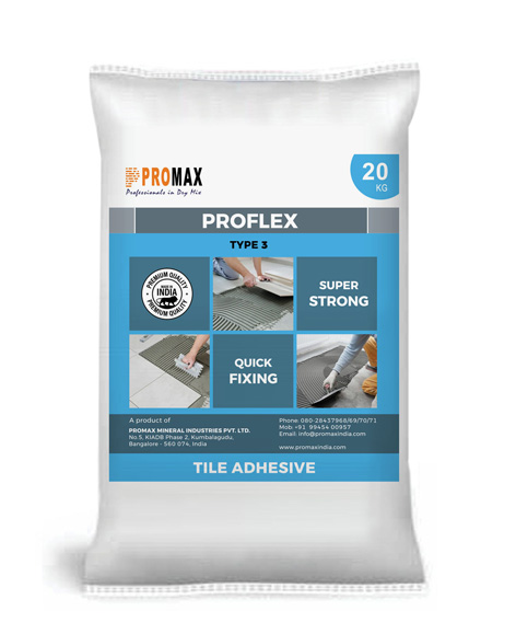 Proflex is a factory-made polymer modified grey cement based adhesive, suitable for ceramic tile, vitreous, semi-vitreous tile, glass mosaic tiles, precast terrazzo, engineered stone, natural stones.