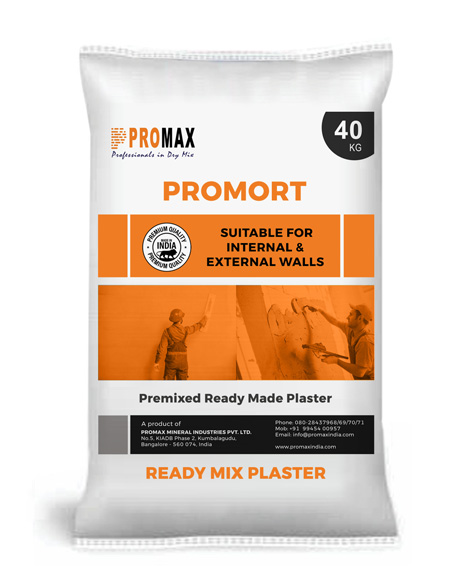 Promort is a cementitious dry mix plaster/render consisting of portland cement, graded aggregates & special chemical additives to obtain a homogeneous mix, good shrinkage control and workability. It is suitable for internal & external plastering works. Promort is durable, has good adhesion and excellent mechanical properties. Just add water, mix and plaster for a smooth, high quality finish.